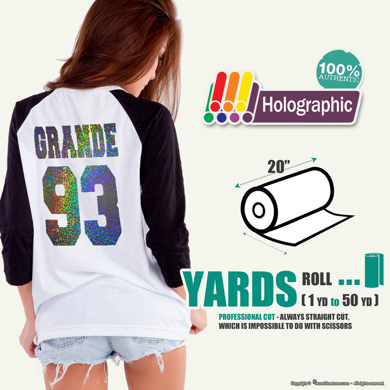 Holographic by Siser is a new dimension in heat transfer vinyl. Holographic is available in many special effect colors and finishes that will take your designs to a new level. Love the look of rhinestones but don't want to go through all the hassle? Holographic can be cut to look like rhinestones. The Holographic line also features our Spectrum material. Spectrum is unlike any other material, giving your designs a mirror, rainbow finish.